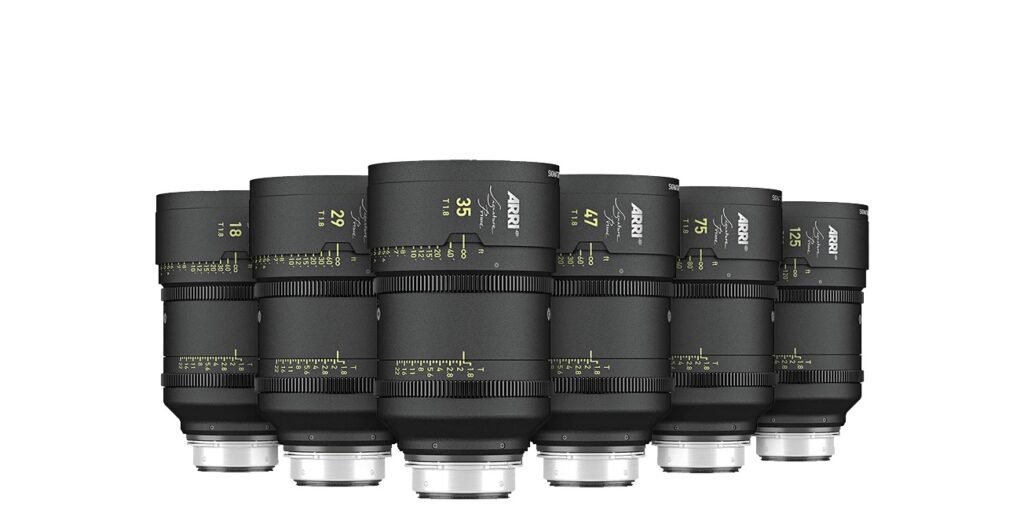 Arri Signature Primes feature large-format coverage with exceptional optical performance, offering a cinematic look with smooth bokeh and natural color rendition, perfect for professional filmmaking.